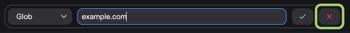 ^means "match a URL starting with", e.g.^example.commatchesexample.combut notwww.example.com$means "match a URL ending with", e.g.example.co$matchesexample.cobut notexample.co.uk- Use