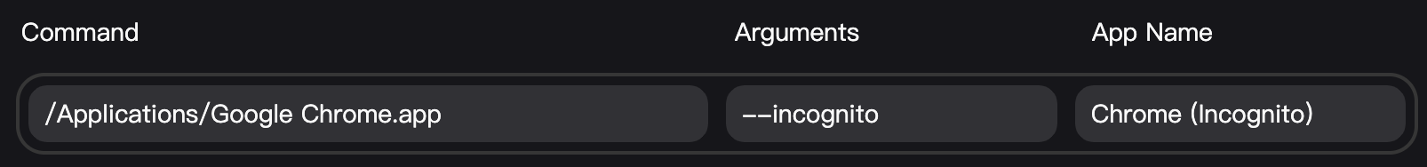 You can pass custom arguments to browsers. This is useful for opening browsers in specific modes, like incognito or private browsing.