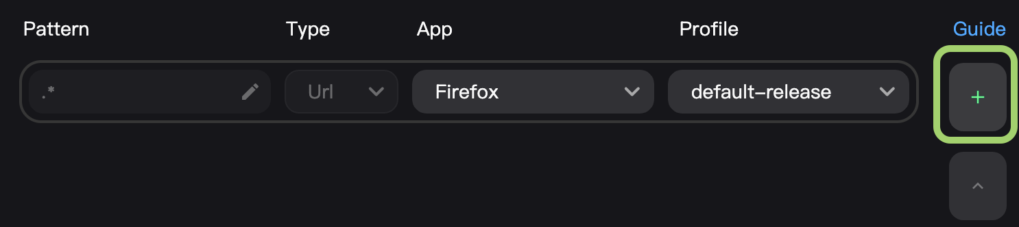 Each rule consists of a pattern, a type, a browser, and a profile.